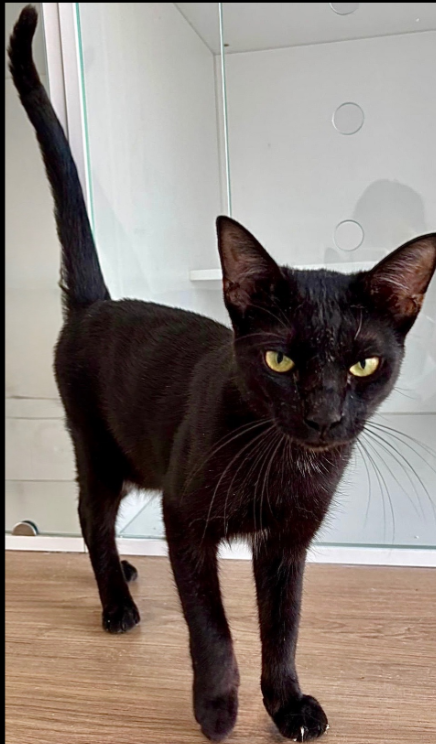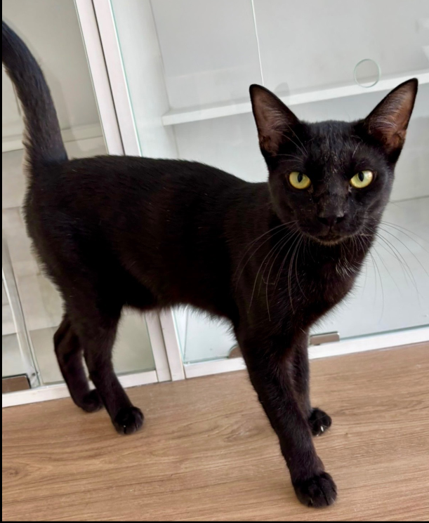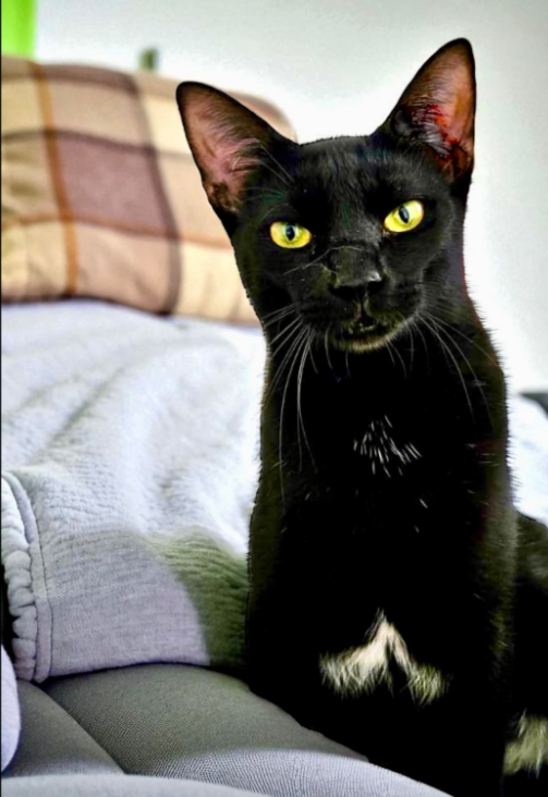 Despite his panther-like looks, he’s pure softness inside. Blicky gets along beautifully with other cats, dogs, and children, and won’t ever hurt anyone unless truly provoked. He’s playful, calm, and endlessly loving — the kind of cat that brings comfort and warmth to any home.
