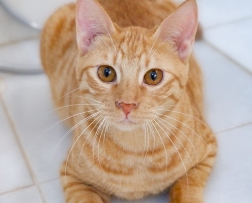 Bee is very easy to lure with treats. He’s happy to come for pets and scratches in exchange for a treat. At first, he might seem a bit tough or aloof, but that’s just his way of protecting himself from strangers. Beneath that, he’s a soft, sweet, snuggle-loving kitten. Seeing is Bee-lieving when it comes to this lovely young kitten. Bee is a ginger gentleman who already is a hero. Having been the first to bravely interact with his rescuer he has maintained his outgoing personality. A great look-out, he can be found perched high as he surveys the area.