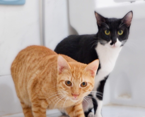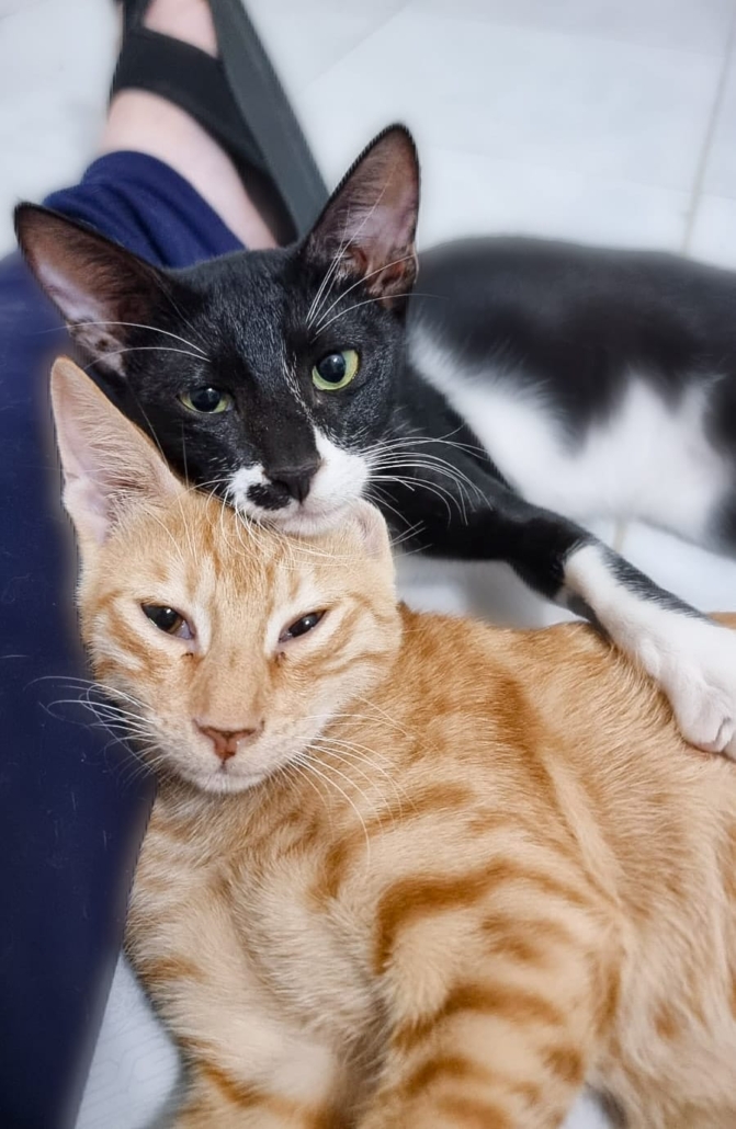 They are both fully vaccinated for tricat and rabies, neutered, microchipped, tested negative for mycoplasma and FIV/FeLV.