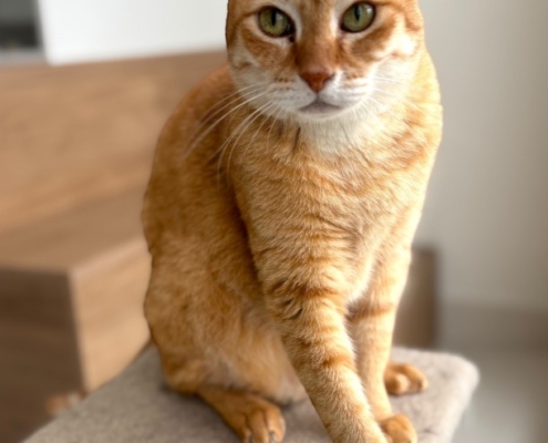 Cheeto needs to be the only cat in the home (with the sole exception of her best friend Bobby, whom she tolerates). She prefers a calm household with adult humans only. She plays when she feels like it, ignores you when she doesn’t, and loves basking in the sun and watching the world go by. A fully enclosed, cat-proofed balcony or garden would be ideal, though not required.
