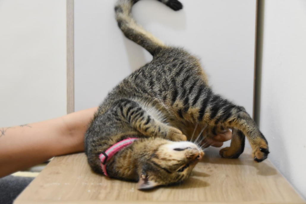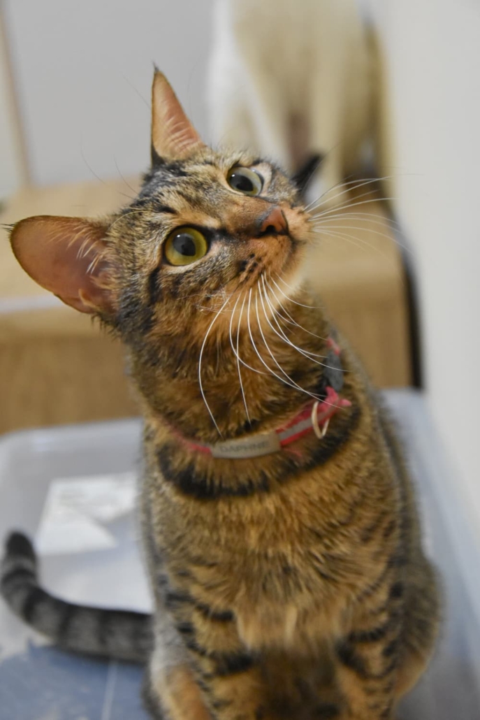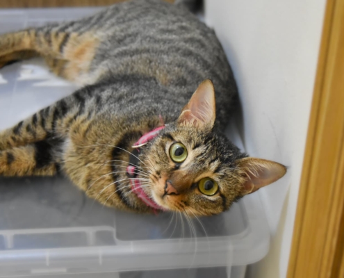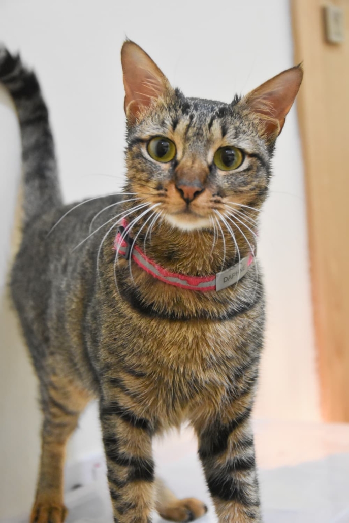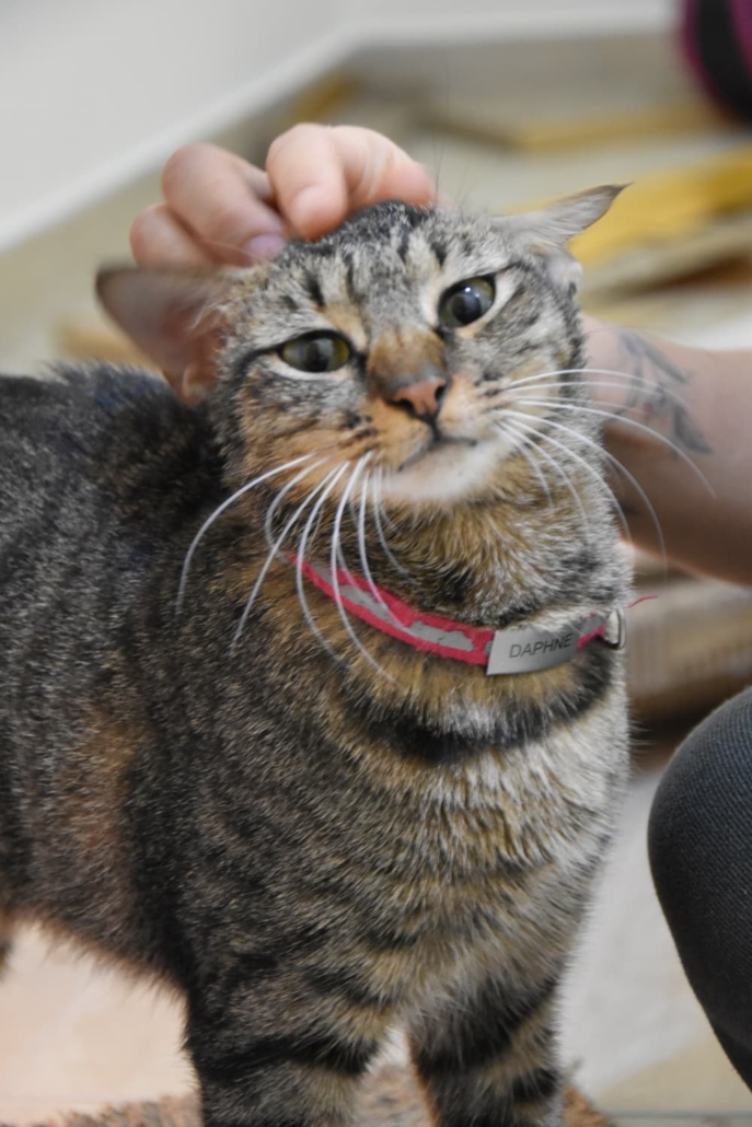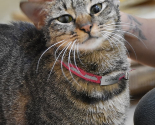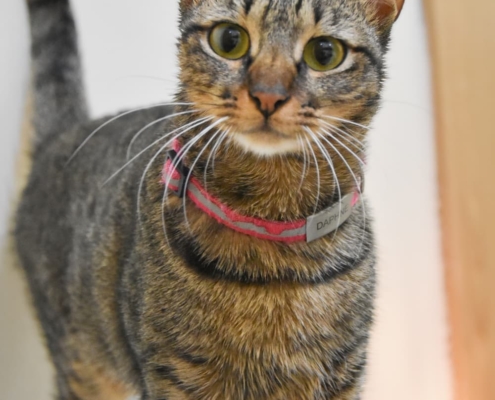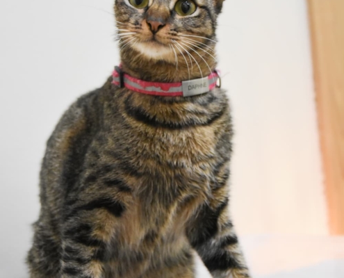 Now one year old, Daphne is the sweetest cat you’ll ever meet. Her friendly and loving nature will melt your heart from the moment you see her. With her charming head tilts and adorable belly flops, she loves to interact and will happily win you over with her affectionate personality. Daphne is confident and friendly with everyone, even strangers, and her irresistible charm makes everyone want to take her home.