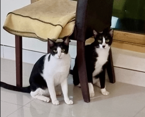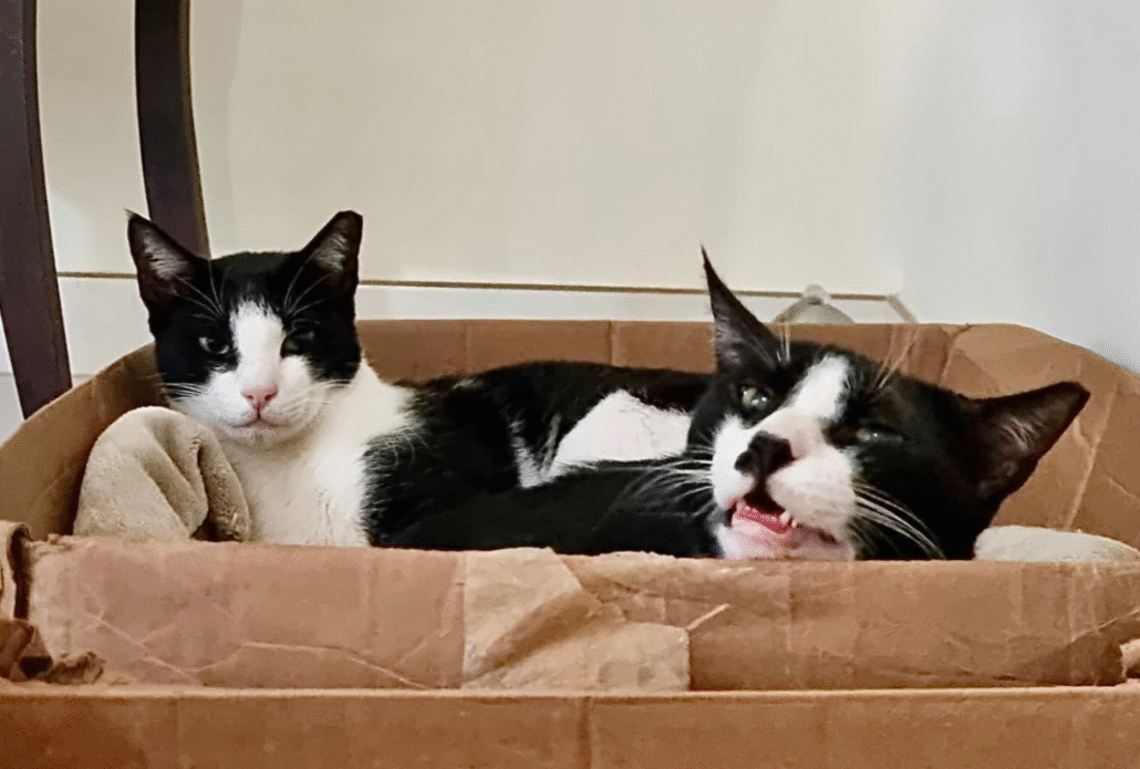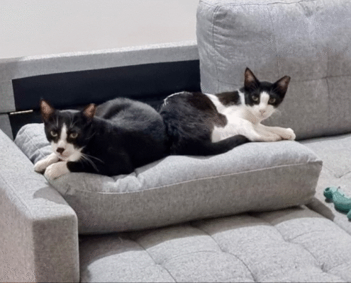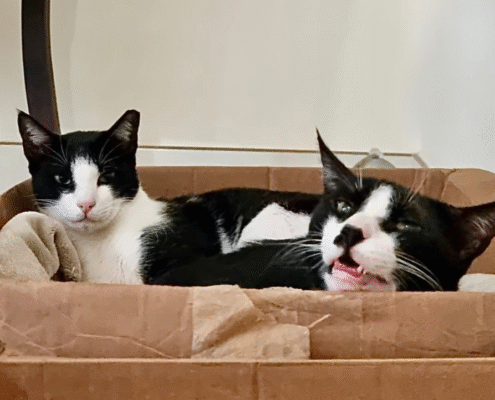 If you’ve been searching for charm, elegance, and endless entertainment, allow us to introduce James and Charles – two dashing tuxedo brothers, born on Valentine’s Day 2021, who are as stylish as they are affectionate. These four-year-old gentlemen are bonded for life and now looking for a forever home where they can continue their journey together.