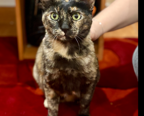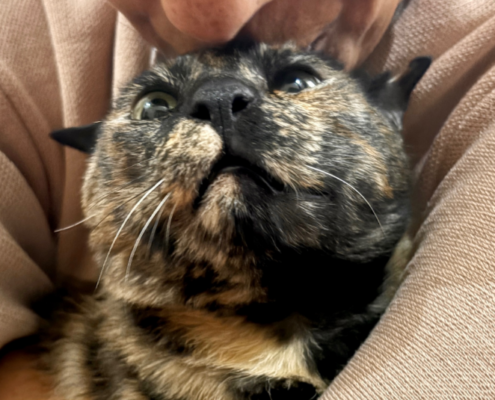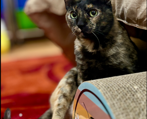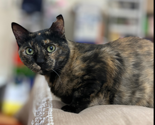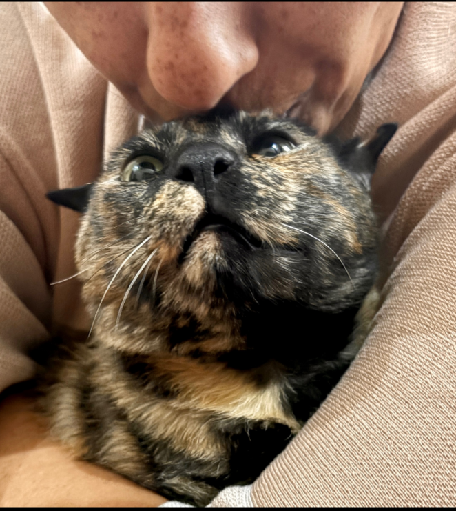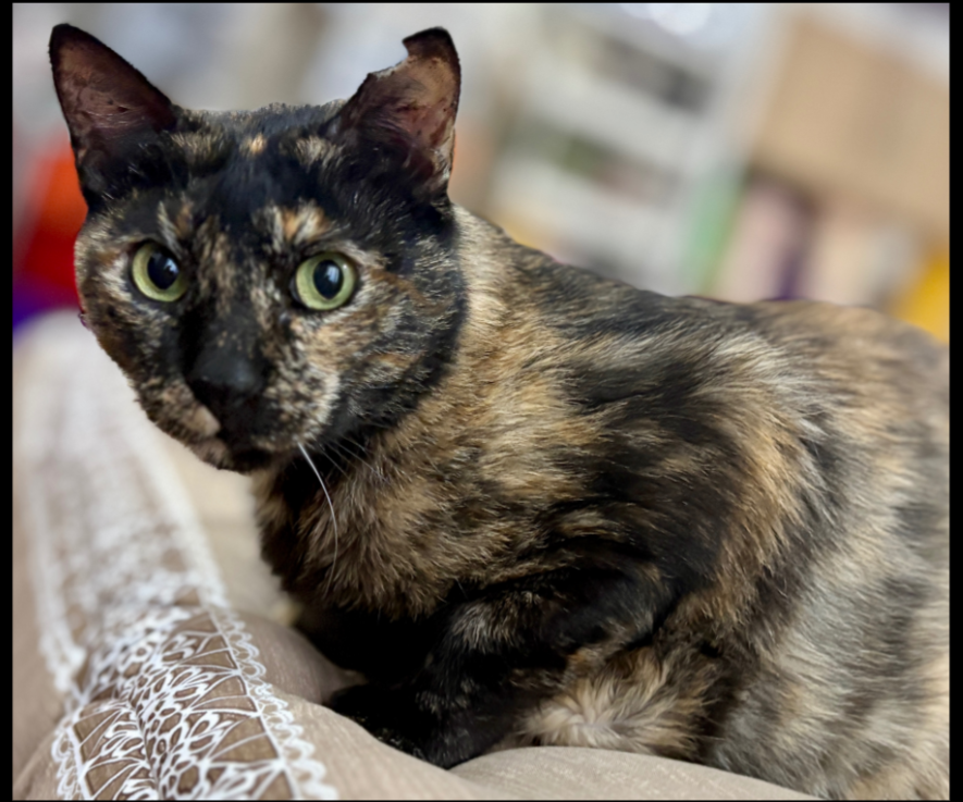 Mama Luna is an 7-8 year-old Tortoiseshell queen with one of the sweetest and most trusting personalities you could ever hope to meet. She is extremely affectionate, endlessly gentle, and loves nothing more than curling up on your lap and soaking in every bit of love and comfort she can find. She has a calm, soothing presence that fills a home with warmth, joy, and a deep sense of contentment.
