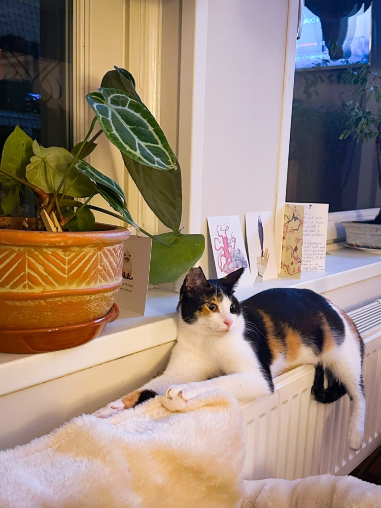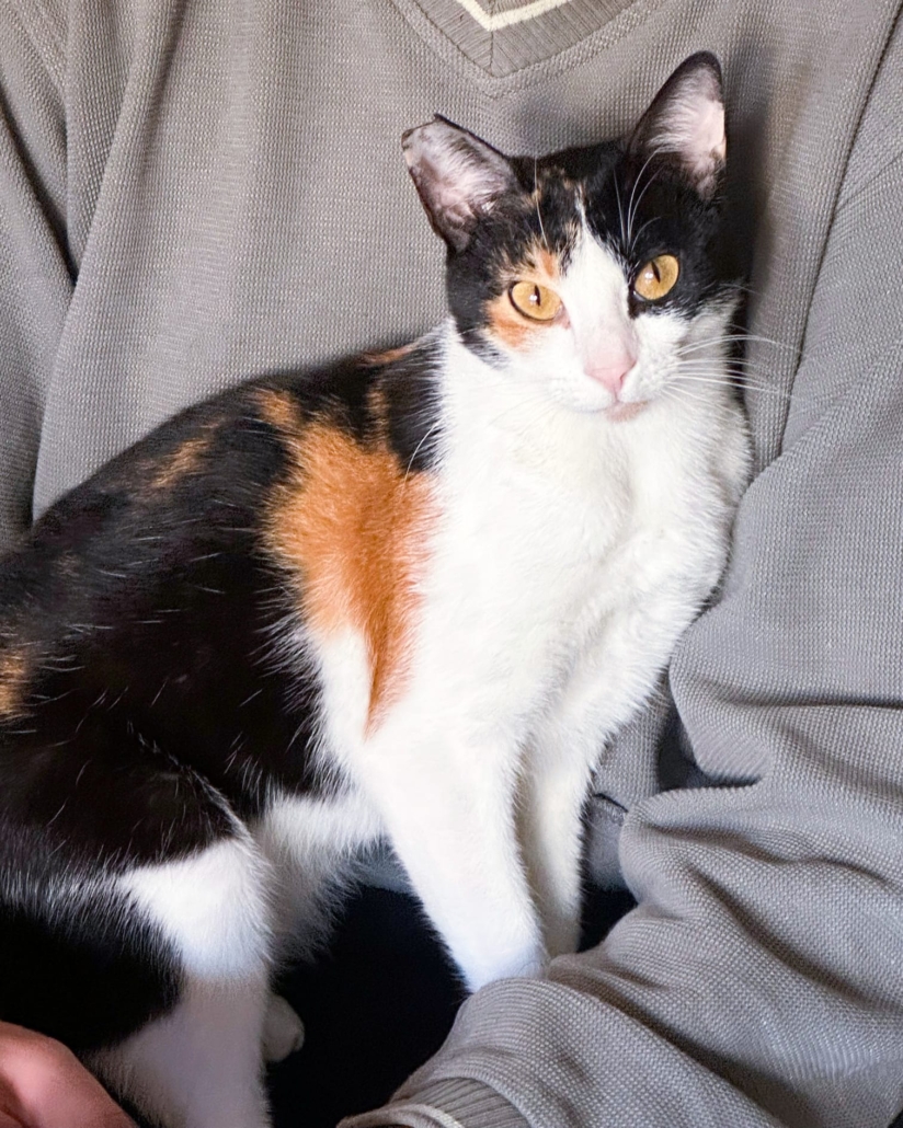 Matilda is a beautiful, intelligent young cat with a curious spirit and a big personality. She’s affectionate in her own quiet way and loves being part of daily life — watching you work, playing with her toys, or lounging nearby while you relax.
