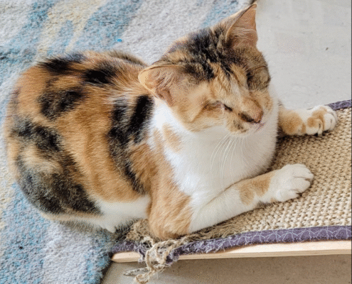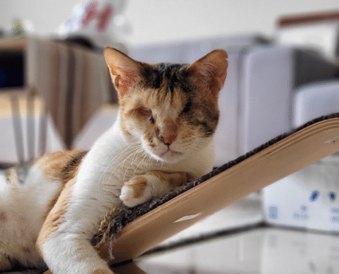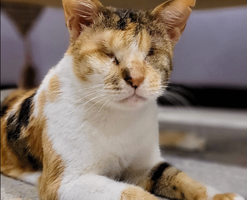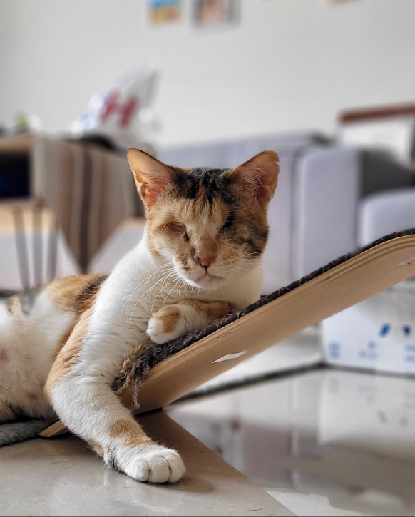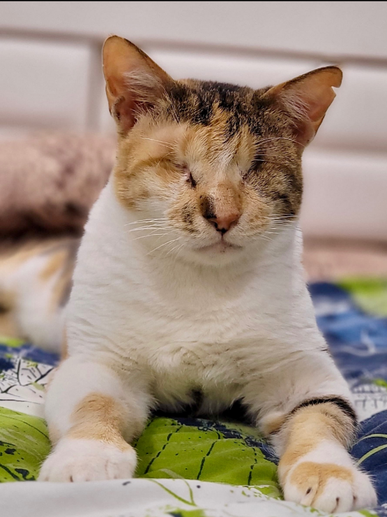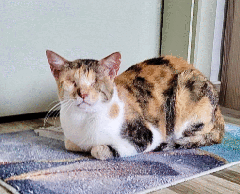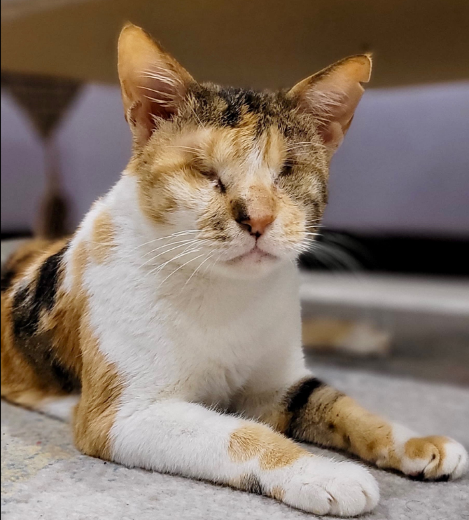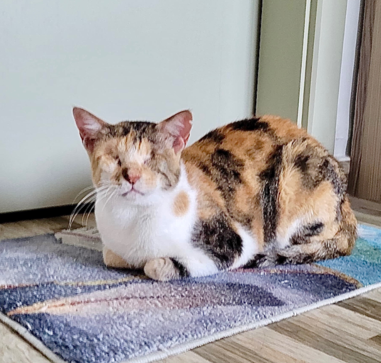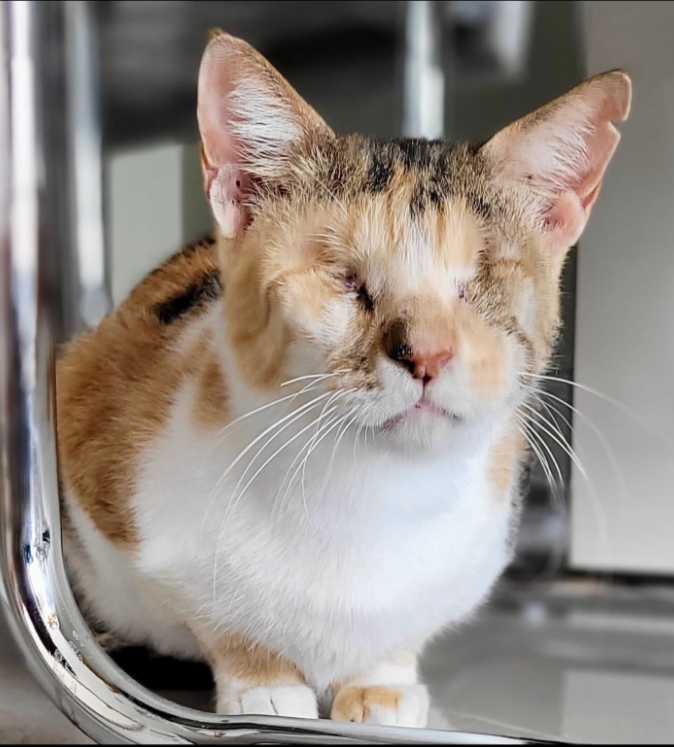 During her first few days in a new home, Mocha will take things slowly as she learns the layout of her environment. Once she maps it out, she becomes confident and independent, moving around with ease and resilience. She adapts beautifully when given time, stability, and a predictable space to call her own.