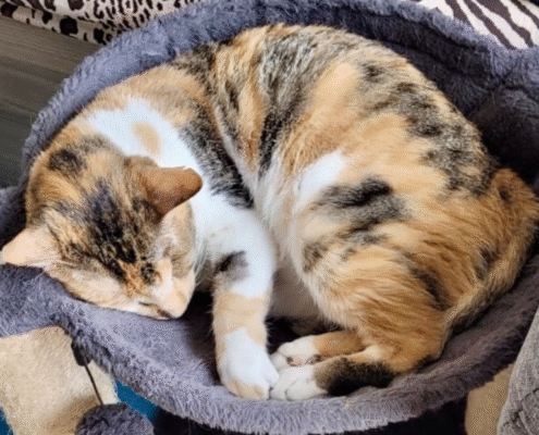 Mocha does not have behavioral issues, but it’s important for adopters to note that when she becomes overstimulated, she may give a gentle, light warning bite; never in aggression, simply her way of saying she needs a moment. It’s rare and only happened once or twice with her foster parents, but sharing this helps ensure she finds a home that understands her communication style.