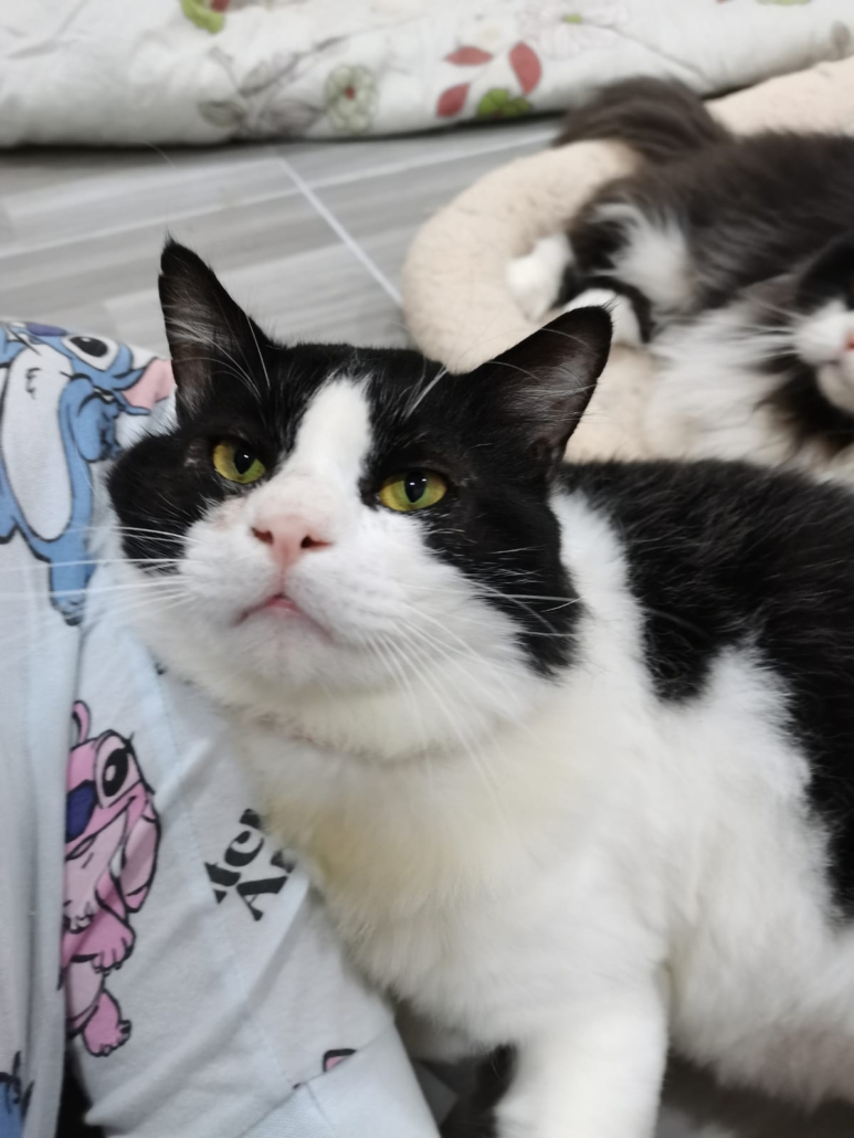 Zorro is calm, peaceful, and quietly affectionate. He shares his space beautifully with other cats, never picking fights or asserting dominance. Instead, he prefers curling up in a cozy corner, observing the world with soft, trusting eyes. With humans, he is immediately loving — strangers included. He walks right up for head rubs, and if you place him on your lap, he will stay there indefinitely, purring gently until he drifts off to sleep.